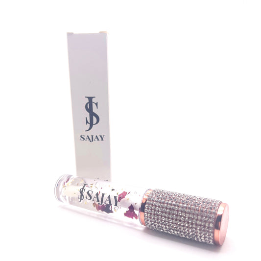 This Lipgloss is Coconut Scented with gold foil flakes & fake rose petals Rhinestone top 5ml wand...