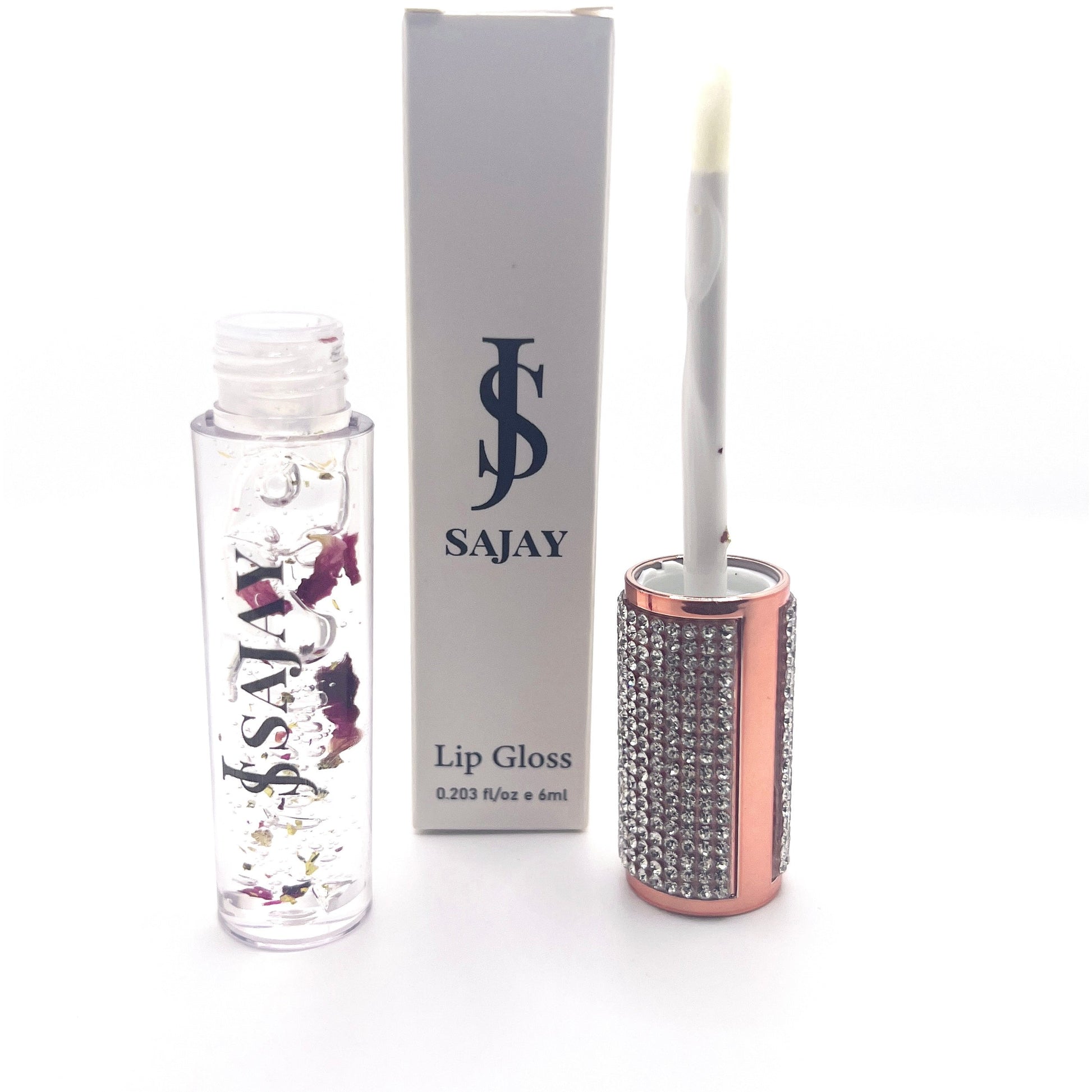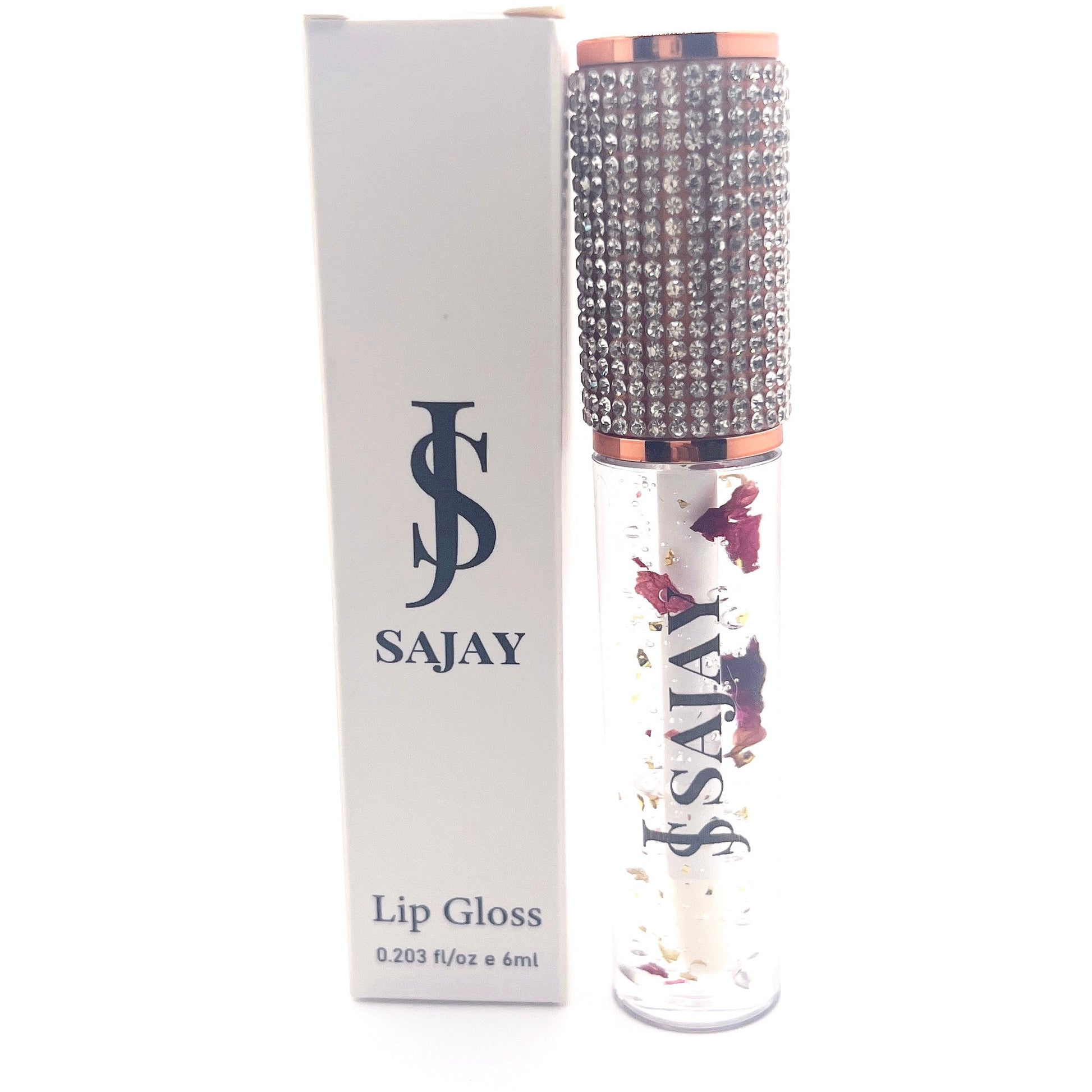 This Lipgloss is Coconut Scented with gold foil flakes & fake rose petals