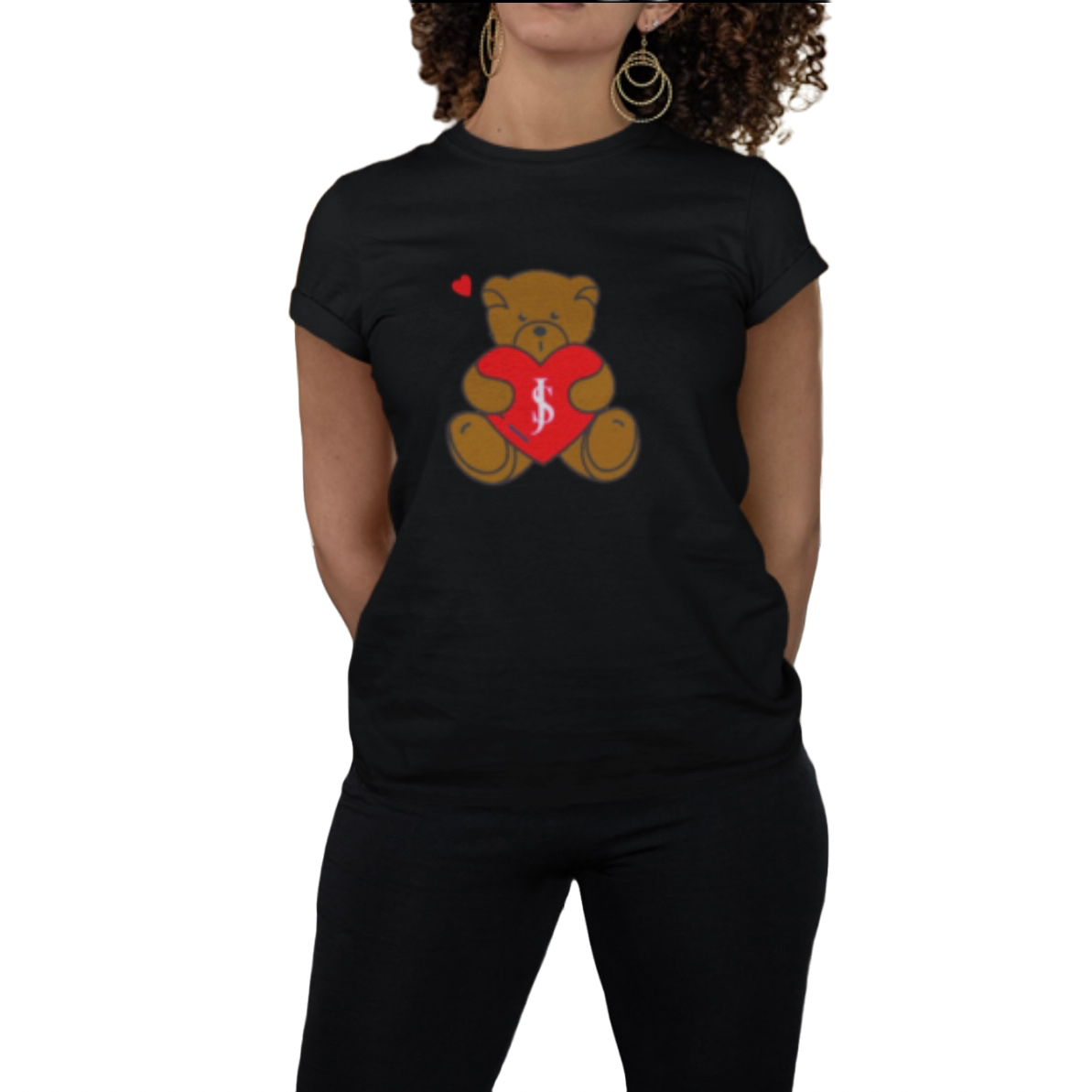 Short Sleeve T shirt (Love yourself Teddy) Black/Red Bear
