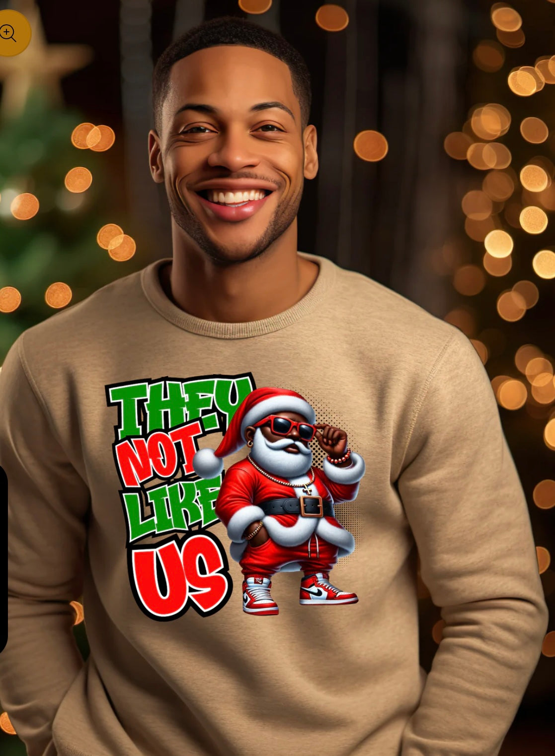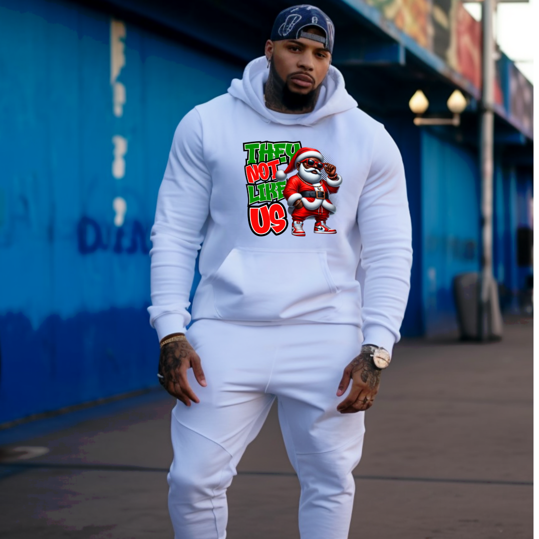 Unisex Classic cozy Holiday Hoodie They not like us Santa in the front.