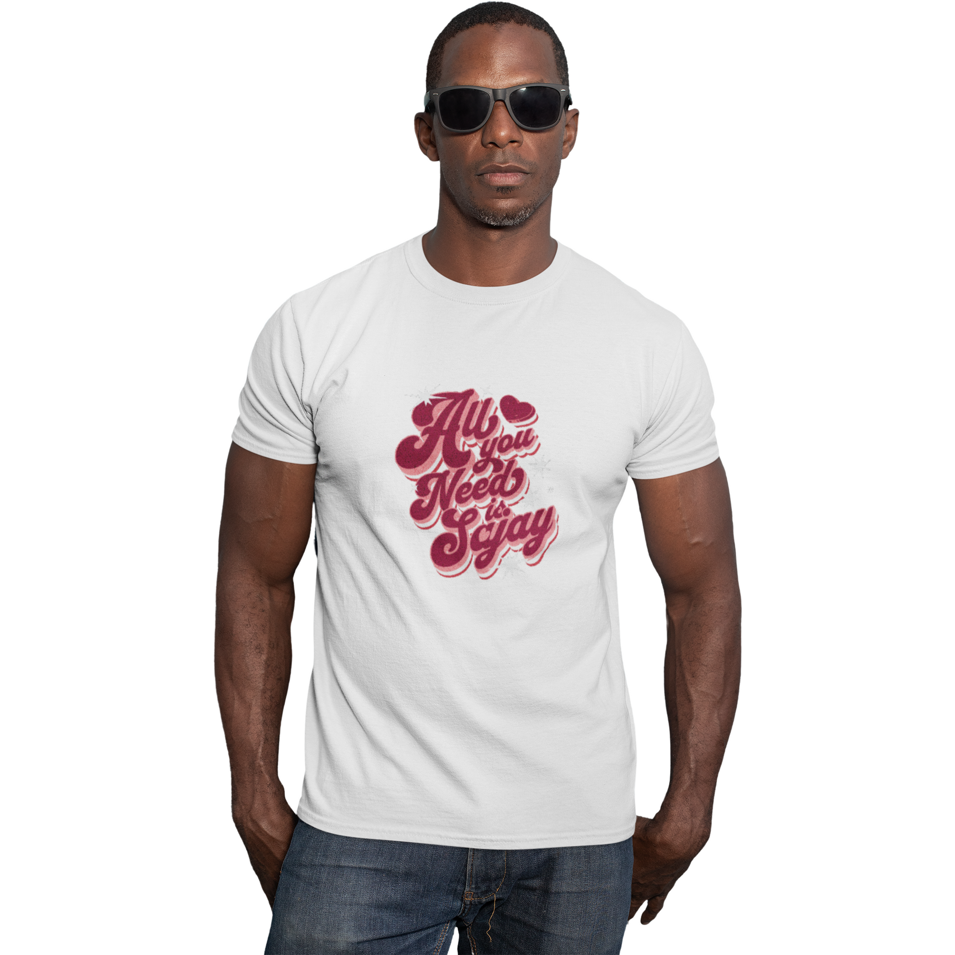 All you need is SAJAY Tee Shirt (White- Red Slogan)
